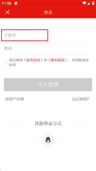 3、在登錄頁面,點擊輸入框,輸入手機號碼。