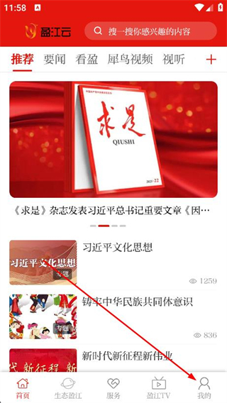1、打開盈江云,點擊底部導航欄的我的選項。