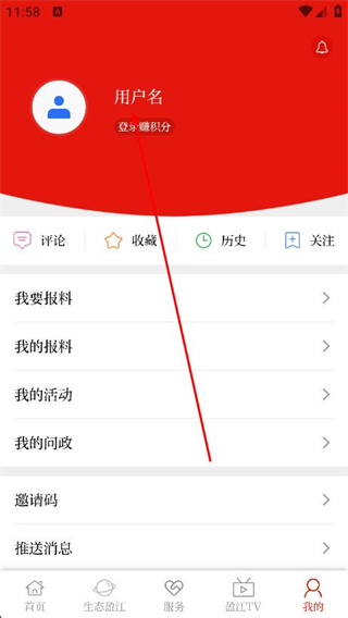 2、在我的頁面,找到并點擊上方的頭像區(qū)域。