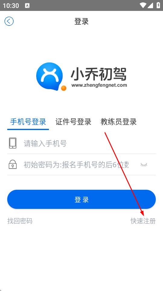 3、進(jìn)入登錄頁面后,點(diǎn)擊右下角的快速注冊選項(xiàng)。