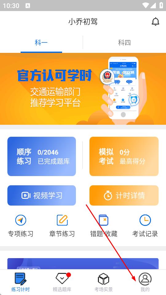 1、打開小喬初駕APP,進(jìn)入主界面,點(diǎn)擊底部導(dǎo)航欄中的我的。