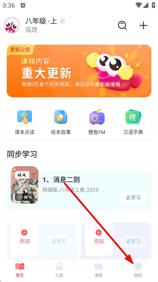 1、在鯉魚輔導(dǎo)的首頁,需要點(diǎn)擊底部我的按鈕,進(jìn)入個(gè)人頁面。
