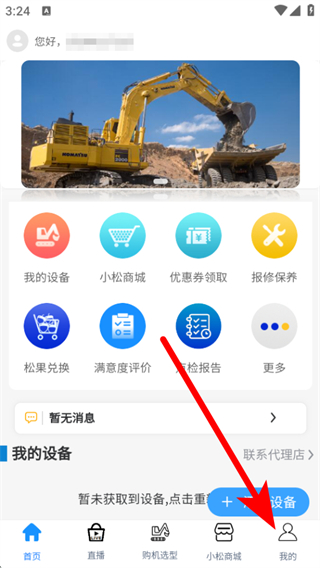 1、打開我的小松APP,點(diǎn)擊右下角我的,進(jìn)入個(gè)人頁面。