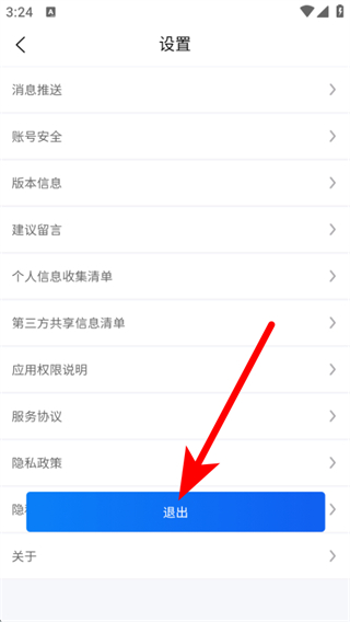 3、在設(shè)置的頁面,我們需要點(diǎn)擊退出的按鈕,將會(huì)彈出確認(rèn)框。