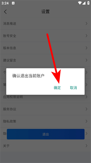 4、彈出確認(rèn)退出當(dāng)前賬戶的確認(rèn)框后,點(diǎn)擊確定,完成賬號(hào)退出操作。