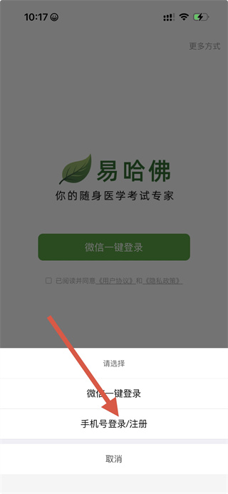 2、在登錄方式選擇框中,點擊手機號登錄/注冊選項,進入手機號登錄頁面。