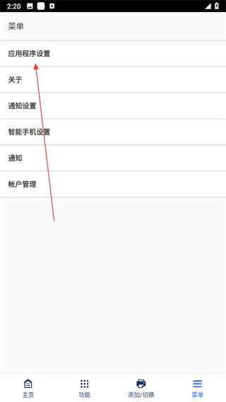 2、在菜單頁面,點擊應(yīng)用程序設(shè)置選項。