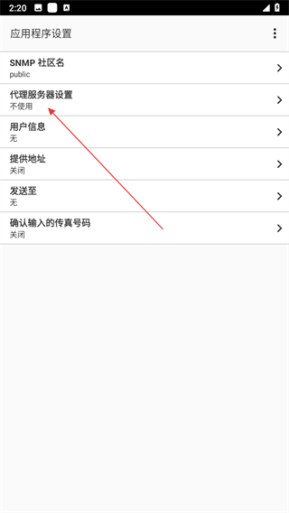 3、在應(yīng)用程序設(shè)置頁面,點擊代理服務(wù)器設(shè)置。
