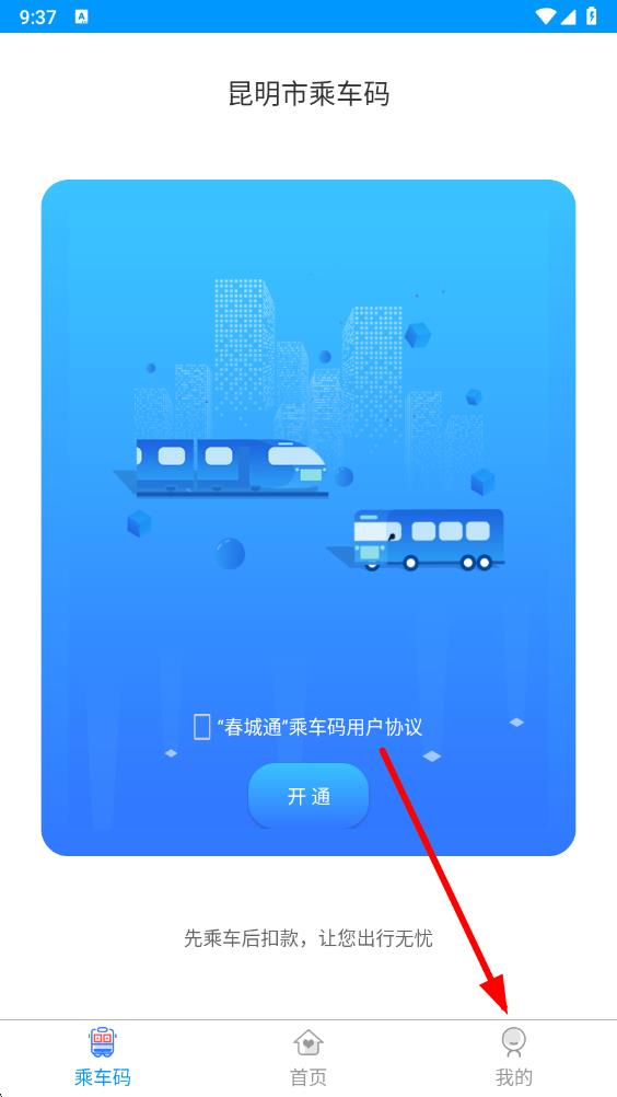 1、打開春城e路通app,點(diǎn)擊底部導(dǎo)航欄中的我的,進(jìn)入個(gè)人相關(guān)頁面。