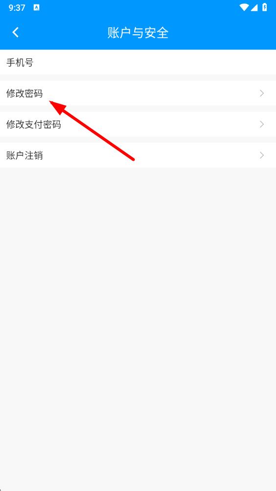 4、在賬號(hào)與安全頁面,點(diǎn)擊修改密碼選項(xiàng),進(jìn)入密碼修改界面。