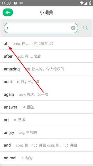 3、在搜索結(jié)果里,找到并點(diǎn)擊需要查看的單詞選項(xiàng)。