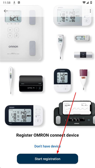 1、打開歐姆龍筆記APP,點擊Start registration按鈕開始設備連接。