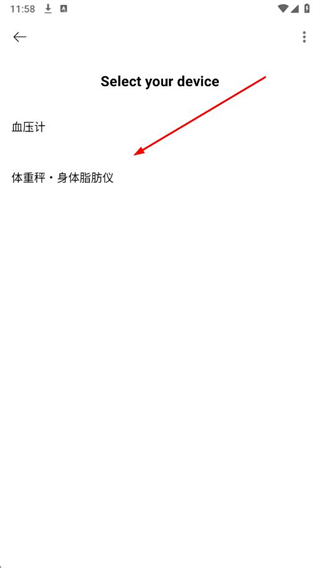 2、在設備選擇頁面,選擇要連接的設備類型,如血壓計。
