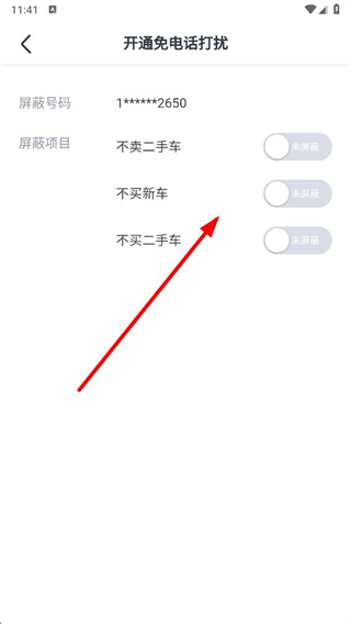 4、在開通免電話打擾頁面,可根據(jù)需求選擇屏蔽項目,開啟對應的免打擾設置。