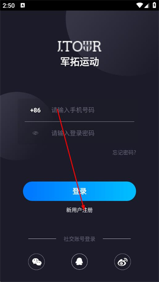 2、在登錄頁面,點(diǎn)擊新用戶注冊(cè)。