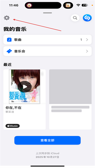 2、進入我的音樂的界面內(nèi),點擊左上角設(shè)置的功能按鈕。