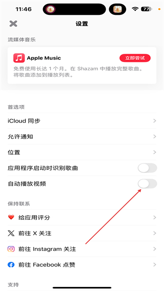 3、在設(shè)置的界面內(nèi),找到自動播放視頻并點擊右側(cè)的開關(guān)按鈕。