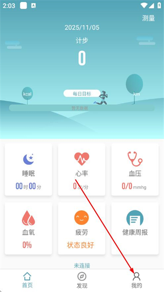 1、打開Wearfit 2.0 APP,點擊底部導(dǎo)航欄的我的。