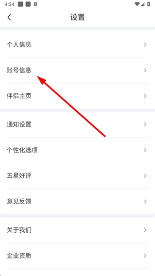 2、在設(shè)置界面,點(diǎn)擊賬號信息選項(xiàng),進(jìn)入賬號信息頁面。