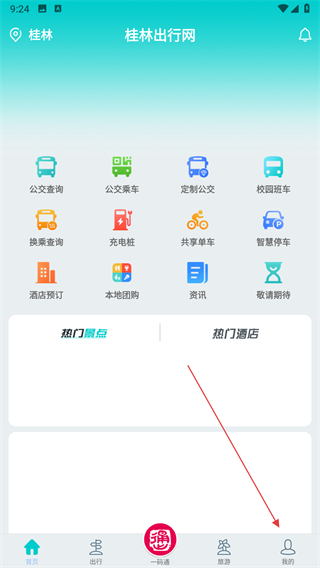 1、打開桂林出行網(wǎng)APP,點擊我的選項,進入個人頁面。