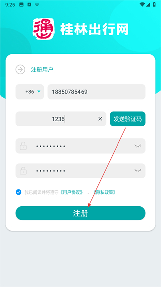 4、勾選用戶協(xié)議和隱私政策后點擊注冊按鈕,即可完成注冊。