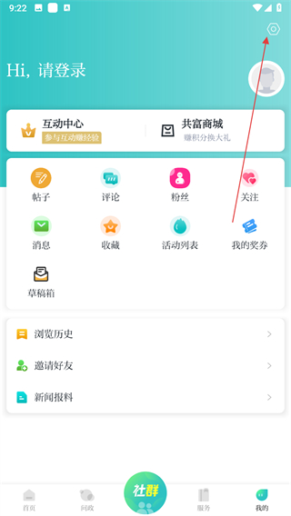 2、進入個人頁面后點擊右上角的設置圖標,進入設置頁面。