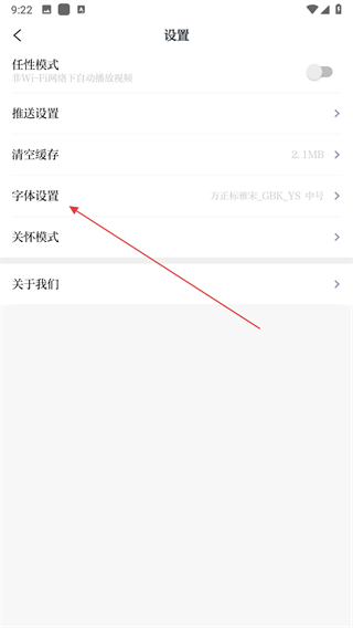 3、在設置頁面點擊字體設置選項,進入字體設置頁面。