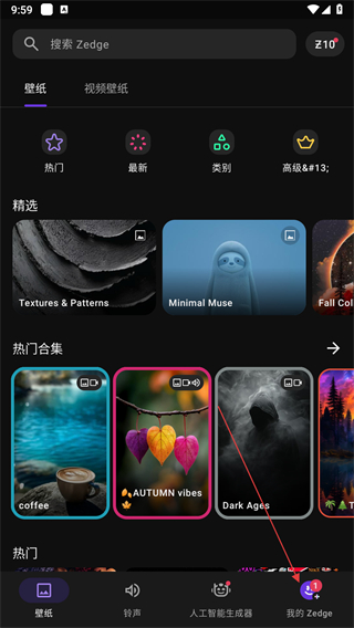1、打開Zedge應(yīng)用,點(diǎn)擊底部我的Zedge,進(jìn)入個(gè)人頁面。