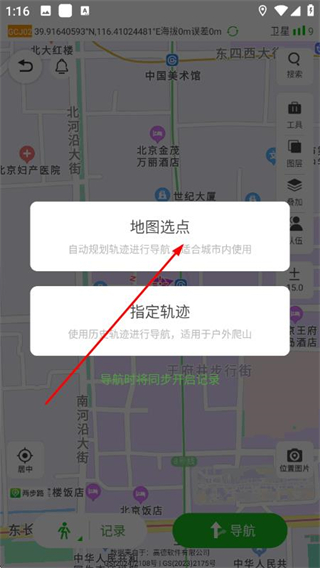 3、選擇地圖選點模式,自動規(guī)劃軌跡適合城市內(nèi)使用。
