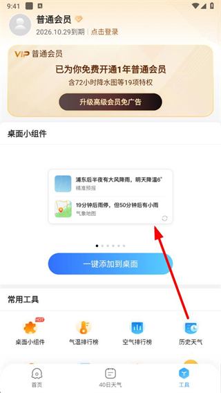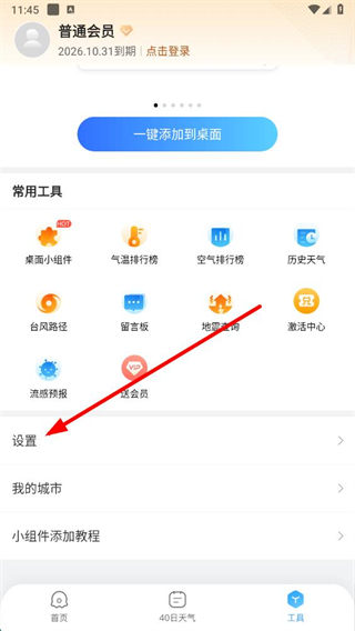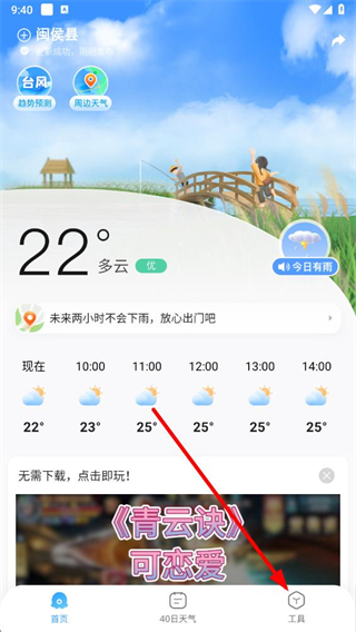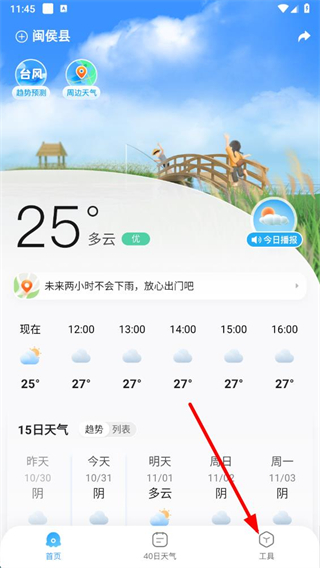 1、打開(kāi)2345天氣王APP,點(diǎn)擊右下角工具選項(xiàng)。