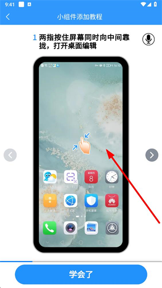 4、根據(jù)彈出的小組件添加教程操作,即可將2345天氣王小組件添加到桌面。