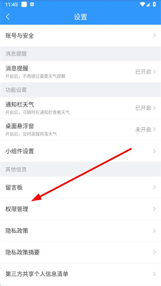 3、進(jìn)入設(shè)置頁(yè)面后,點(diǎn)擊權(quán)限管理選項(xiàng)。