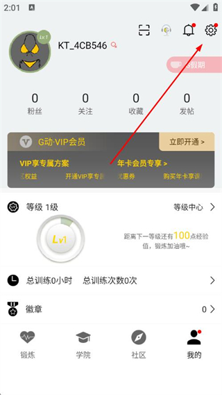 2、在個人中心頁面,點擊右上角設(shè)置圖標(biāo),進(jìn)入設(shè)置界面。
