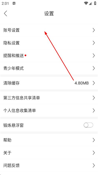 3、在設(shè)置界面,點擊賬號設(shè)置,進(jìn)入賬號設(shè)置頁面。