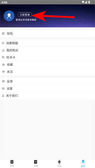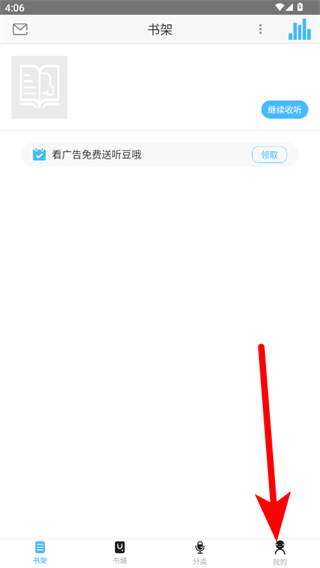 1、在聽世界聽書app書架頁面,點擊右下角我的選項,進入個人中心界面。