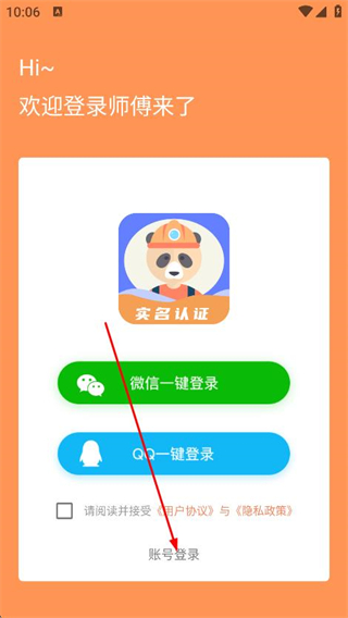 3、在登錄頁面,找到并點(diǎn)擊下方的賬號登錄選項(xiàng)。