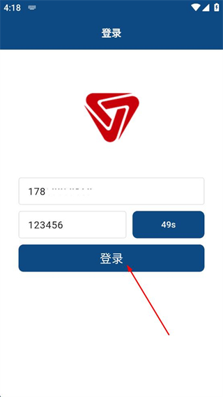 1、在登錄界面,輸入手機號,點擊獲取驗證碼,輸入驗證碼。