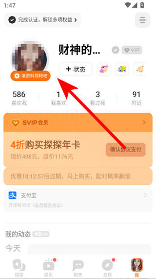 1、打開(kāi)探探APP,點(diǎn)擊底部導(dǎo)航欄中的發(fā)現(xiàn),進(jìn)入發(fā)現(xiàn)頁(yè)面。