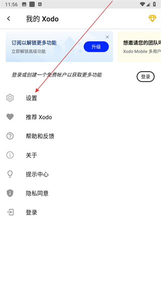 2、在我的Xodo頁面中,點擊設置選項,進入詳細設置界面。