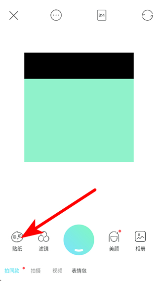 2、在拍攝界面中點(diǎn)擊表情包選項(xiàng),切換到表情包制作模式。