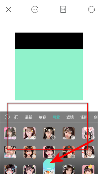 3、點(diǎn)擊貼紙選項(xiàng),可在熱門、最新、妝容、可愛(ài)等分類中選擇喜歡的貼紙。