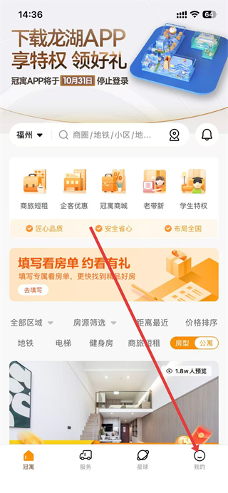 1、打開冠寓app,點擊底部導航欄最右側我的選項。