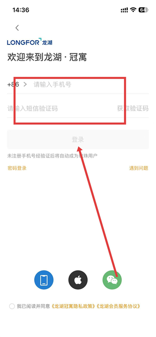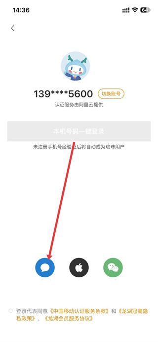 3、進入登錄注冊界面后,找到并點擊手機號登錄按鈕。
