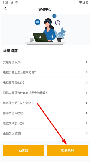 3、在客服中心頁面,點擊右下方的客服熱線按鈕。