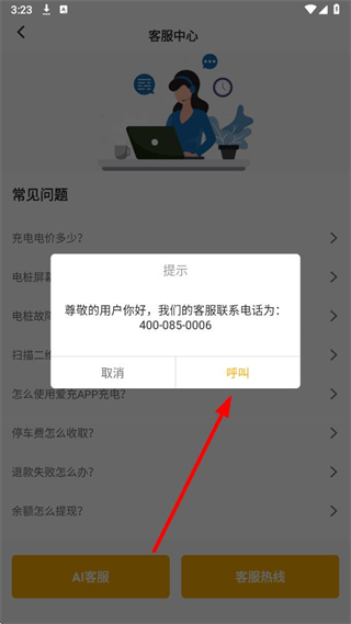 4、在彈出的提示框中,點擊呼叫即可撥打客服熱線即可聯(lián)系客服。