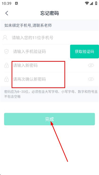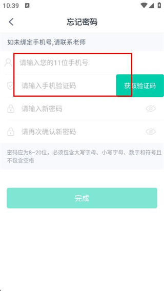 2、在忘記密碼頁面,輸入手機號,填寫收到的驗證碼。