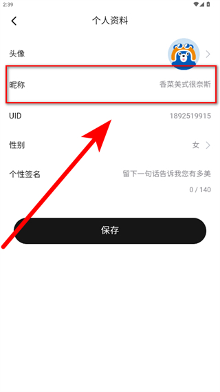 4、在個人資料頁面點擊昵稱,即可修改美顏相機昵稱名字。