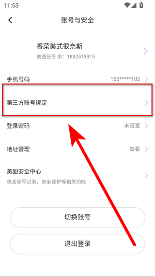 3、在賬號與安全頁面點擊第三方賬號綁定,進入第三方賬號綁定頁面。