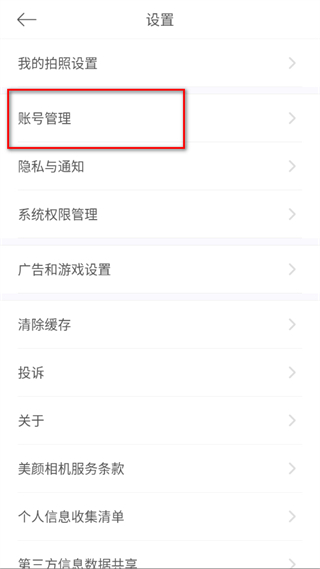 2、在設置頁面點擊賬號管理,進入賬號與安全頁面。