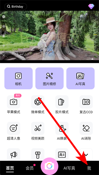 1、打開美顏相機APP,點擊右下角我,進入個人頁面。